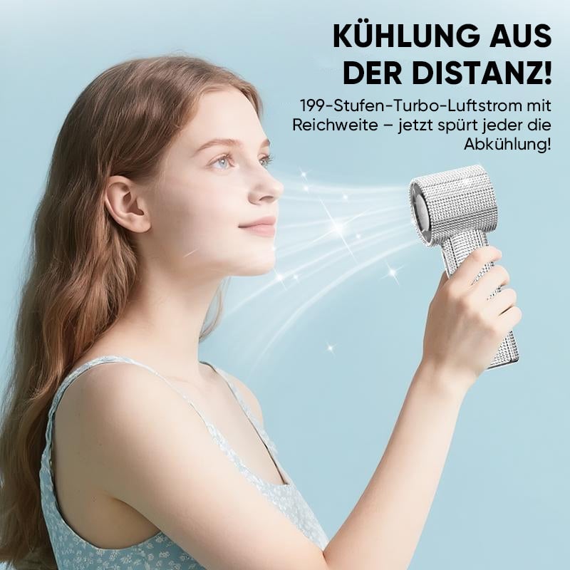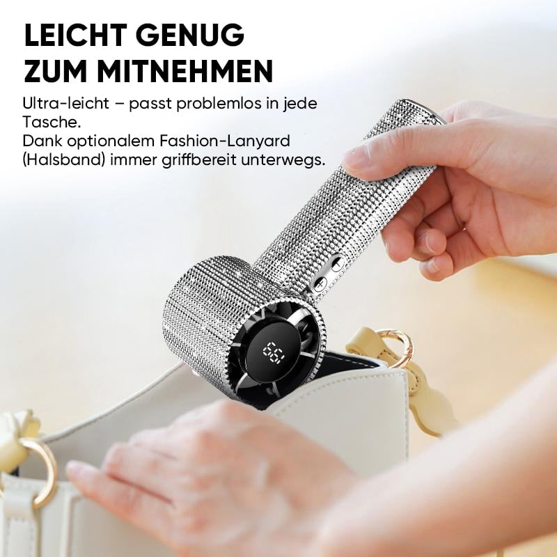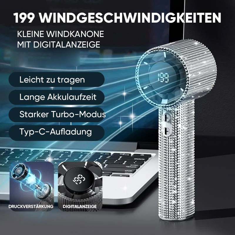Mit 199 einstellbaren Windstärken bietet dieser tragbare Ventilator die vollständige Kontrolle auf Knopfdruck. Das Turbo-Luftstromsystem arbeitet mit 7 aerodynamischen Schaufeln, um eine starke, aber dennoch verfeinerte Brise zu liefern, die sich Ihren Bedürfnissen anpasst. Passen Sie die Geschwindigkeit einfach mit den intuitiven “+” und “–” Tasten an – ob für eine sanfte Brise beim Make-up oder eine starke Böe für kühlende Outdoor-Momente – Komfort war noch nie so individuell.