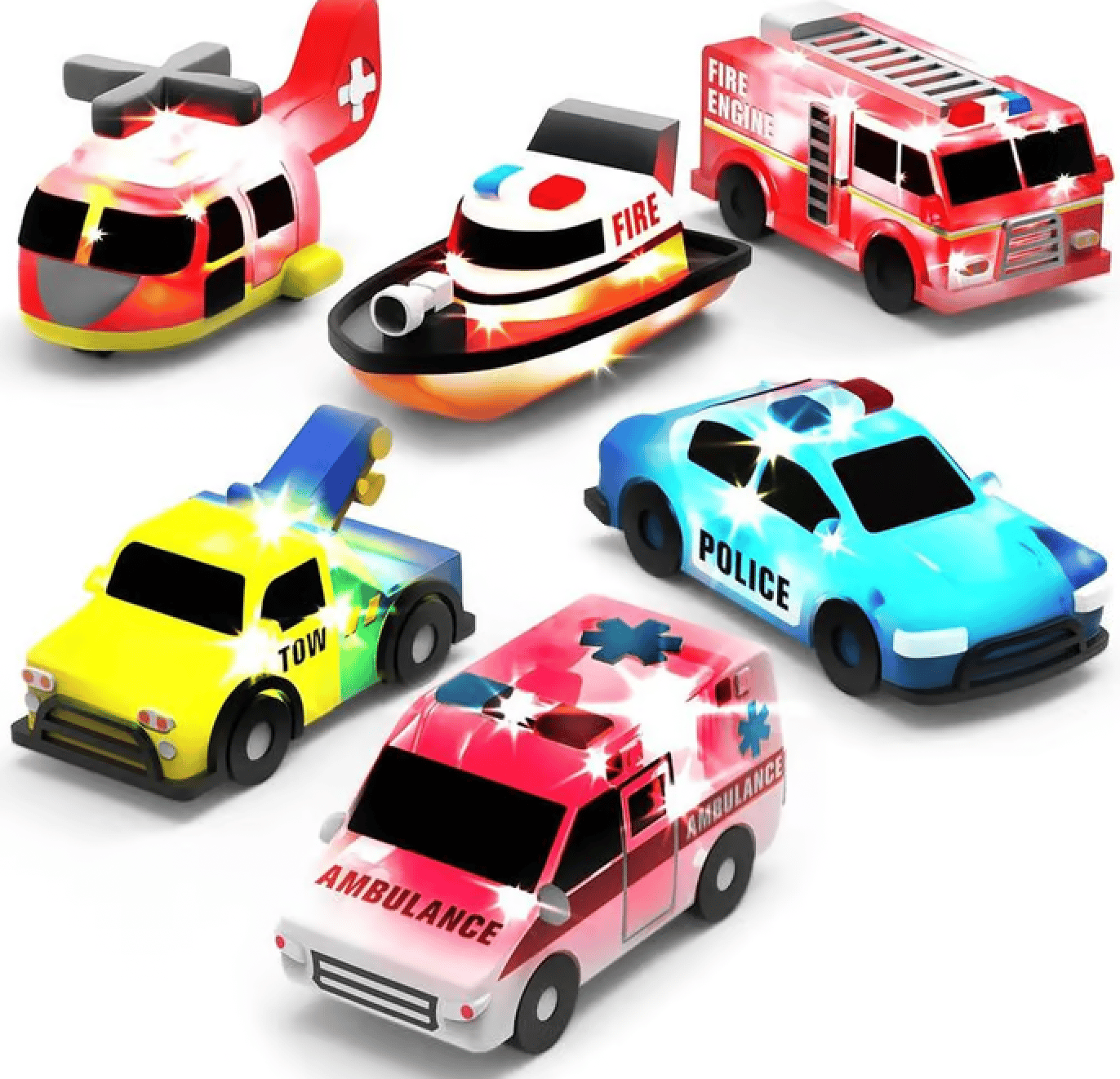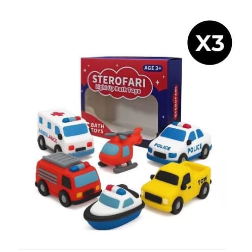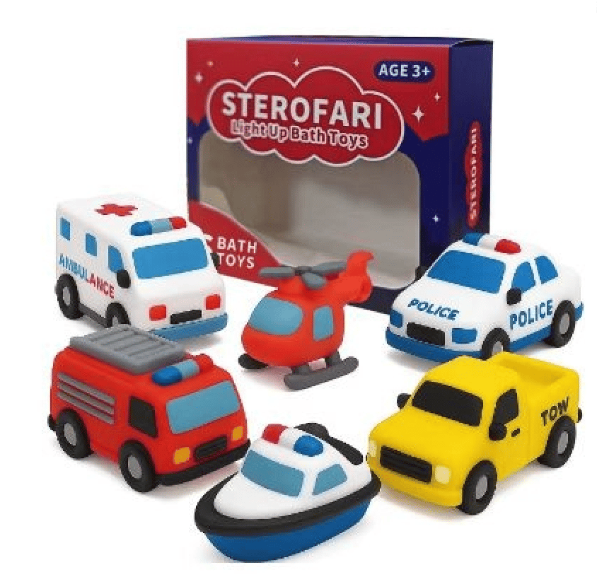 🧿FUN IN THE TUB: Brighten up your kids bath with light up bath toys! These soft & squeezable Emergency cars float in water & feature water-safe lights that flash & change colors when contacting water.