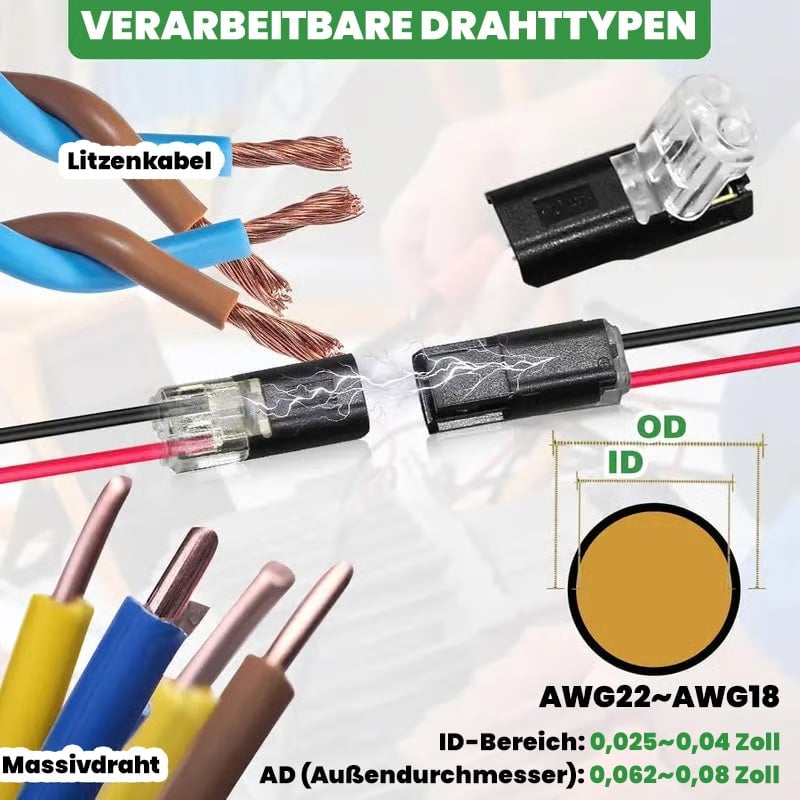 Werkzeuglose Installation: Erzielen Sie eine sichere Verbindung in Sekundenschnelle, ohne Drähte abisolieren oder löten zu müssen.